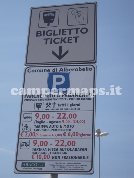 Il Punto Sosta Camper è situato in Via N. Piccinni, in un parcheggio che dista 900 metri dal centro storico di Alberobello.