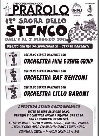La Pro Loco di Prarolo con il patrocinio del Comune è lieta di presentare la 12^ edizione Sagra dello Stinco nel centro cittadino di Prarolo.