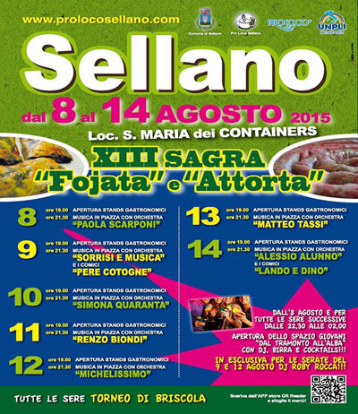 La pro loco Sellano con il patrocinio del comune è lieta di presentare la 13^ edizione della Sagra Fojata e Attorta, a Santa Maria dei Containers.