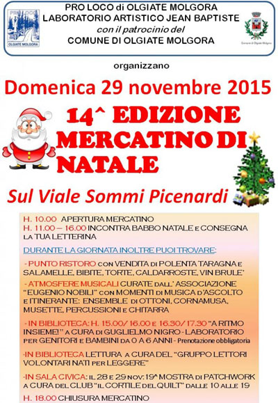 La Pro Loco di Olgiate Molgora con il patrocinio del comune è lieto di presentare la 14^ edizione del Mercatino di Natale a Olgiate Molgora.