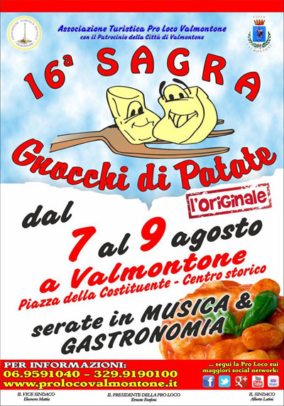 L'Associazione Turistica Pro Loco Valmontone è lieta di presentare la 16^ edizione della Sagra Gnocchi di Patate a Valmontone.
