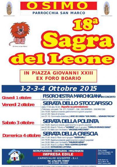 La Parrocchia San Marco con il patrocinio del comune di Osimo è lieta di presentare la 18^ edizione della Sagra del Leone a Osimo.
