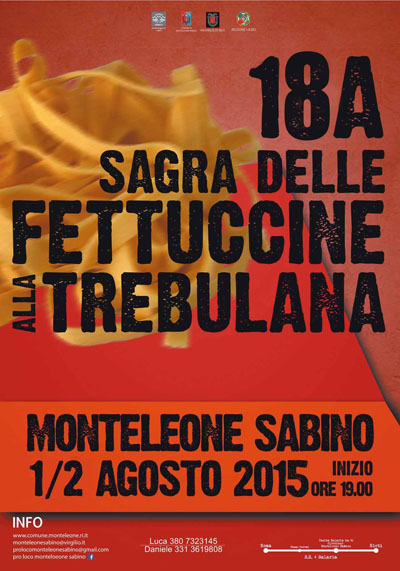 Il Comune di Monteleone Sabino è lieto di presentare la 18^ edizione della Sagra delle Fettuccine alla Trebulana a Monteleone Sabino.