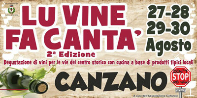 L'Associazione Culturale Don't Stop Me Now con il patrocinio del comune di Canzano è lieto di presentare la 2^ edizione de Lu Vine Fa Cantà a Canzano.