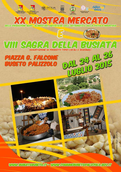 Il comune di Buseto Palizzolo è lieto di presentare la 20^ edizione della Mostra Mercato e la 8^ edizione della Sagra della Busiata a Buseto Palizzolo.