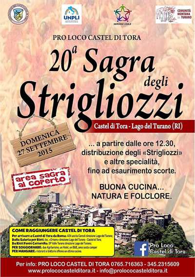 La Pro Loco di Castel di Tora con il patrocinio del comune è lieta di presentare la 20^ Sagra degli Strigliozzi a Castel di Tora.