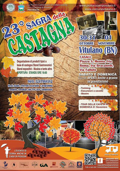 La Pro Loco Camposauro con il patrocinio del comune è lieta di presentare la 23^ edizione della Sagra della Castagna a Vitulano.