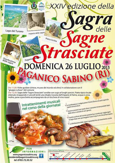 Il Comune di Paganico Sabino è lieto di presentare la 24^ edizione della Sagra Sagne Strasciate a Paganico Sabino.