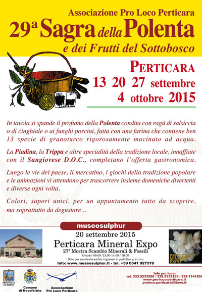 Il comune di Novafeltria è lieto di presentare la 29^ edizione della Sagra della Polenta e dei Frutti del Sottobosco a Perticara.