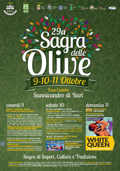 L'Associazione Arci Sannicandro è lieta di presentare la 29^ edizione della Sagra delle Olive a Sannicandro di Bari.