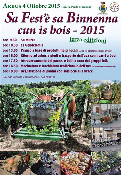 - ore 15.00 - Ritorno ad Arbus a Piedi e trasporto dell'Uva con i Carri e i Buoi