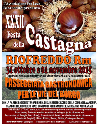 L'Associazione Pro Loco di Riofreddo è lieta di invitarvi alla 32^ edizione della Festa della Castagna a Riofreddo.
