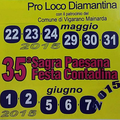La Pro Loco Diamantina con il patrocinio del comune di Vigarano Mainarda è lieta di presentale la 35^ Festa Contadina, la Sagra Paesana a Vigarano Mainarda.