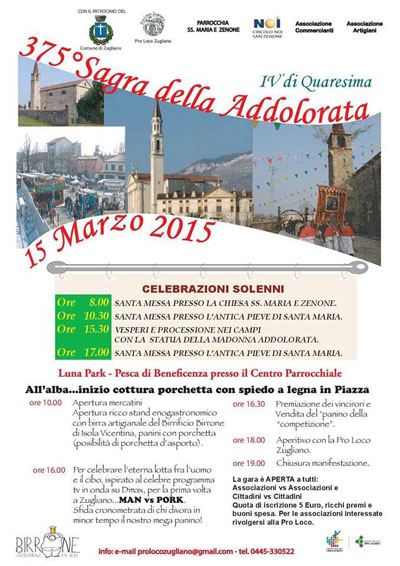 La Pro Loco Zugliano con il patrocinio del Comune di Zugliano presenta la Sagra dell'Addolorata nel centro cittadino.
