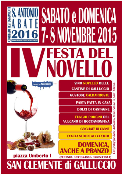 Il Comitato Festeggiamenti Sant'Antonio Abate è lieto di presentare la 4^ edizione della Festa del Novello a San Clemente.