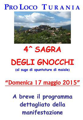 La Pro Loco Turania con il patrocinio del comune è lieta di presentare la 4^ Sagra degli Gnocchi al sugo di spuntature di maiale.