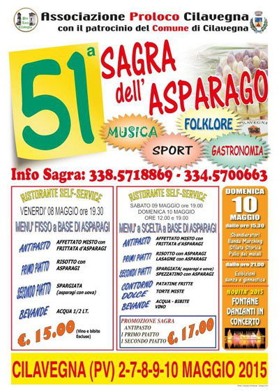 L'Associazione Pro Loco di Cilavegna con il patrocinio del comune è lieta di presentare la 51^ edizione della Sagra dell'Asparago a Cilavegna.