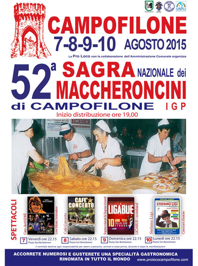 La pro loco con la collaborazione dell'Amministrazione comunale organizza la 52^ Sagra Nazionale dei Maccheroncini a Campofilone.