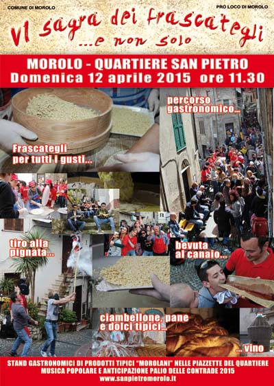 La sagra avrà luogo domenica 12 aprile 2015 presso il Quartiere San Pietro di Morolo dalle ore 11.30 in poi.