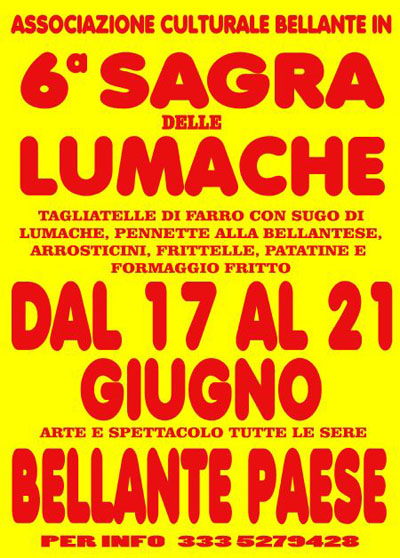 L'Associazione Culturale Bellante In è lieta di presentare la 6^ edizione della Sagra delle Lumache.