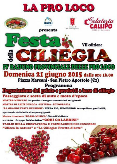 La Pro Loco con il patrocinio del Comune di San Pietro Apostolo è lieta di presentare la Festa della Ciliegia.