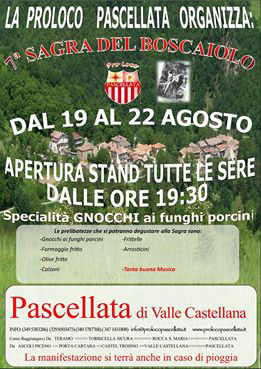 La Pro Loco Pascellata con il patrocinio del comune di Valle Castellana è lieto di organizzare la 7^ edizione della Sagra del Boscaiolo a Pascellata.