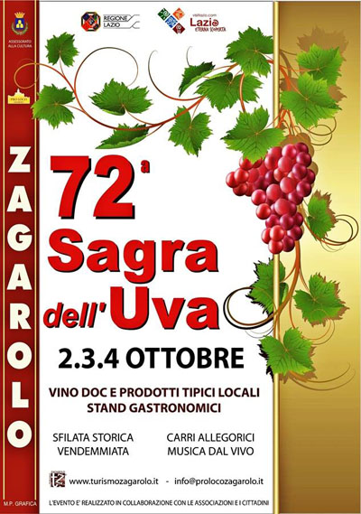La Pro Loco Zagarolo con il patrocinio del comune è lieta di presentare la 72^ edizione della Sagra dell'Uva a Zagarolo.