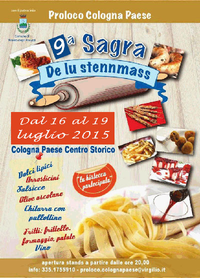 La pro Loco di Cologna Paese con il patrocinio del comune di Roseto degli Abruzzi è lieta di presentare la 9^ Sagra de lu Stennmass.