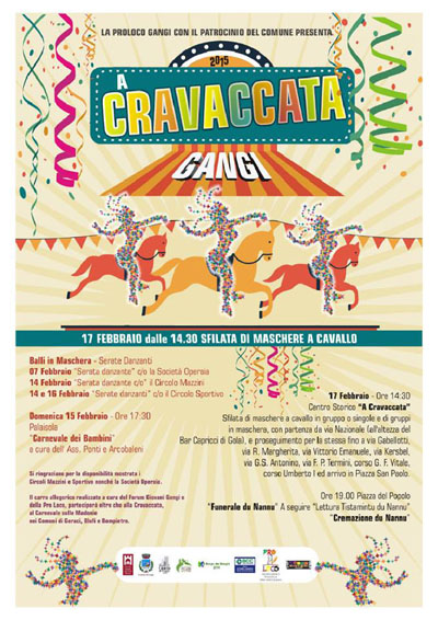 - ore 14.30 - presso il Centro storico A Cravaccata: Sfilata in maschera a cavallo con partenza da Via Nazionale.
