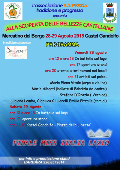 L'evento avrà luogo nei giorni 28 e 29 agosto 2015 nel centro cittadino di Castel Gandolfo.