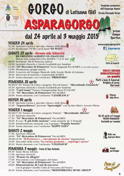 L'evento si terrà nei giorni 24, 25, 26 e 30 aprile 1, 2 e 3 maggio 2015 a Gorgo, frazione di Latisana.