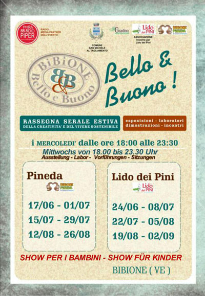 Il Comune di San Michele al Tagliamento è lieto di presentare Bello e Buono, la rassegna estiva della creatività e del vivere sostenibile a Bibione.