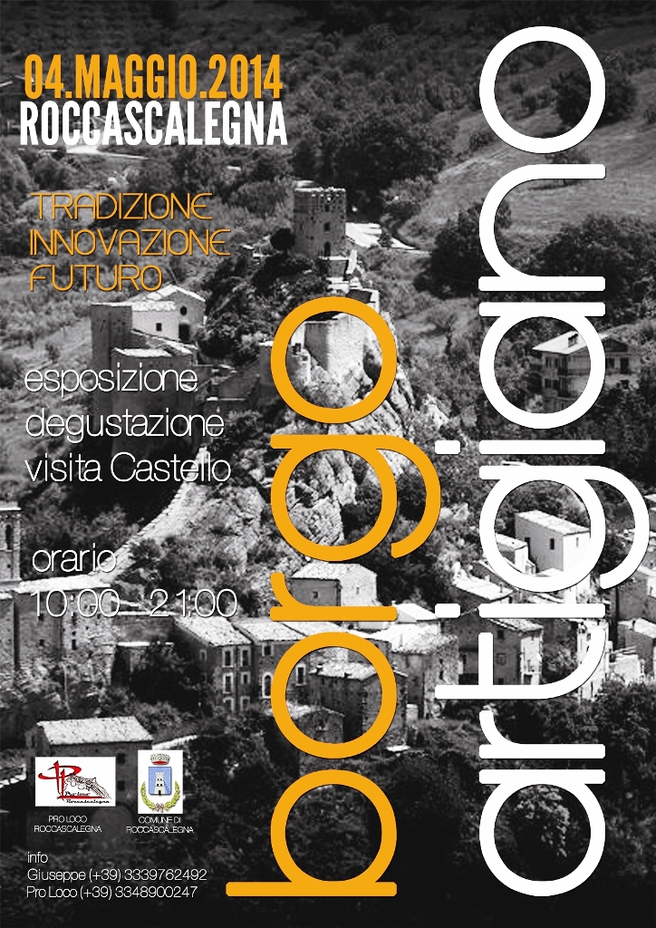 Ai piedi del Castello Medievale di Roccascalegna, il 4 maggio 2014 si svolgerà l'evento "Borgo Artigiano", un appuntamento mensile che tende a valorizzare le realtà del Sangro Aventino.