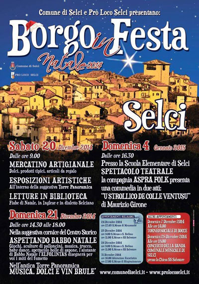 L'evento si svolgerà nel delizioso Borgo di Selci, di poco più di 1000 abitanti, nei giorni 20, 21 dicembre 2014 e 4 gennaio 2015.