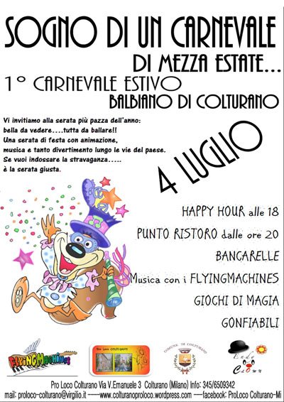 La Pro Loco con il patrocinio del comune è lieta di presentare il Carnevale Estivo, il Sogno di una Notte di Mezza Estate a Colturano.