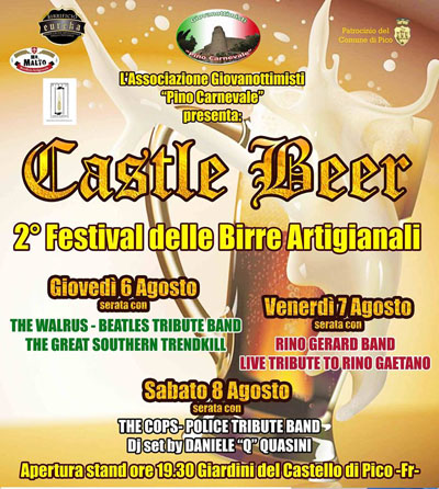 L'Associazione Giovanottimisti Pino Carnevale con il patrocinio del comune di Pico è lieta di presentare Castle Beer la 2^ edizione del Festival delle Birre Artigianali a Pico.
