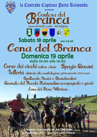 La Contrada Capitana Porta Raimonda è lieta di presentare la Contesa del Branca, la 23^ edizione della corsa dei Ciuchi a Pelo a Fucecchio.