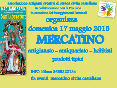 L'associazione Artigiani Creativi di Strada Civita Castellana in collaborazione con la Pro Loco in occasione dei festeggiamenti patronali presenta il Mercatino a Magliano Sabina.