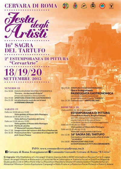 L'evento avrà luogo nei giorni 18, 19 e 20 settembre 2015 a Cervara di Roma.