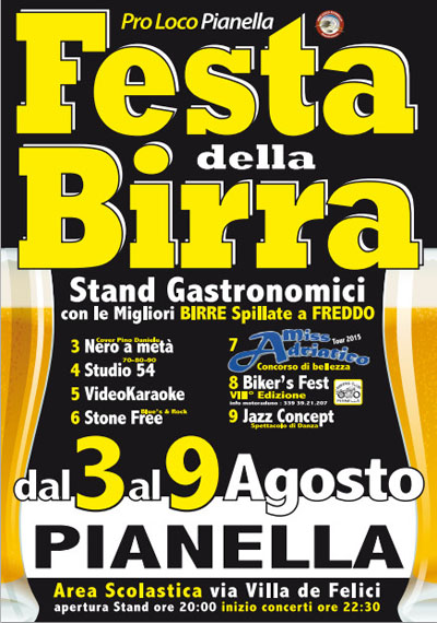 La Pro Loco Pianella con il patrocinio del Comune di Pianella è lieta di presentare la Festa della Birra nel piccolo comune pescarese.