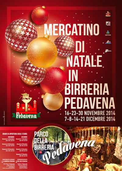 Il mercatino di Natale di Pedavena, quest’anno si svolgerà nei giorni 16, 23 e 30 novembre, e nei giorni 7, 8 e 14 dicembre presso il Parco della Birreria Pedavena. Caratterizzato da bancarelle di ogni genere, prodotti tipici addobbi natalizi ed anche artigianato locale è arricchito da animazioni e musiche natalizie, castagne e vin brulé.