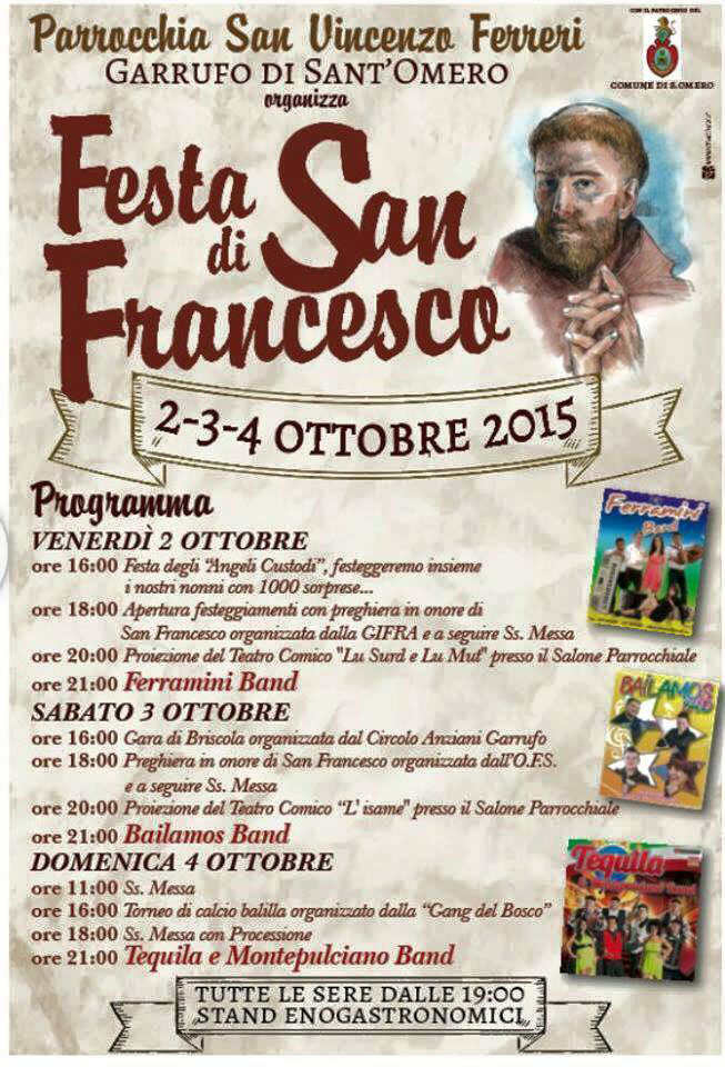 La Parrocchia San Vincenzo Ferreri con il patrocinio del comune di Sant'Omero è lieta di presentare la Festa di San Francesco a Garrufo.