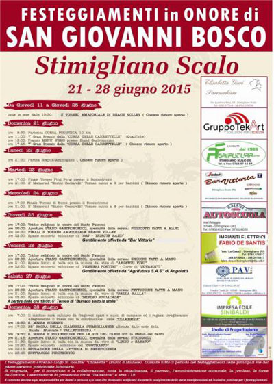 Il Comune di Stimigliano Scalo è lieto di presentare la Festa di San Giovanni Bosco, in onore del patrono di Stimigliano Scalo San Giovanni Bosco.
