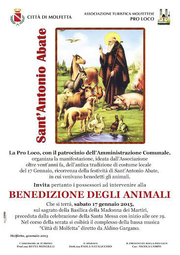 La Pro Loco con il patrocinio del Comune di Molfetta presenta la "Benedizione degli animali nel giorno dedicato a Sant'Antonio Abate".