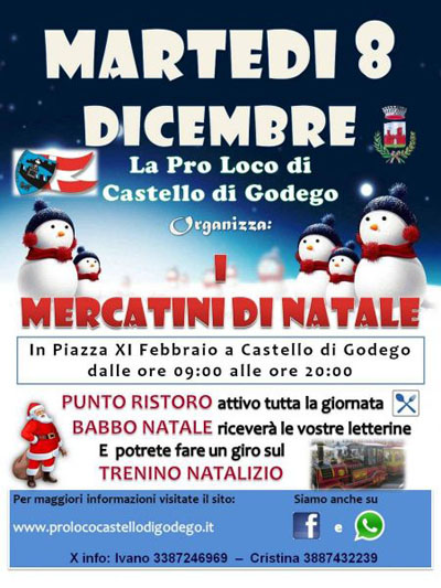 La Pro Loco di Castello di Godego, con il patrocinio del comune di Castello di Godego è lieta di presentare i Mercatini di Natale a Castello di Godego.