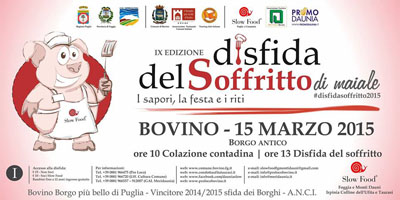 La Pro Loco con il patrocinio del Comune di Bovino è lieto di presentare la IX edizione della Disfida del Soffritto di Maiale, in provincia di Foggia.