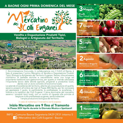 Il comune di Baone è lieto di presentare Il Mercatino dei Colli Euganei a Baone.