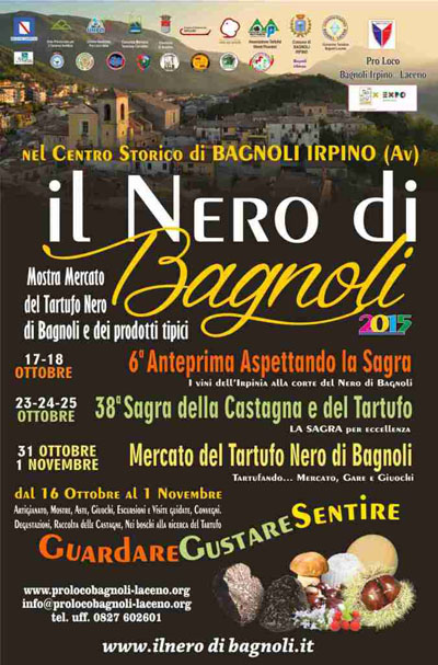 La Pro Loco di Bagnoli Irpino con il patrocinio del comune è lieta di presentare Il Nero di Bagnoli, la mostra mercato del Tartufo Nero di Bagnoli e dei Prodotti Tipici.