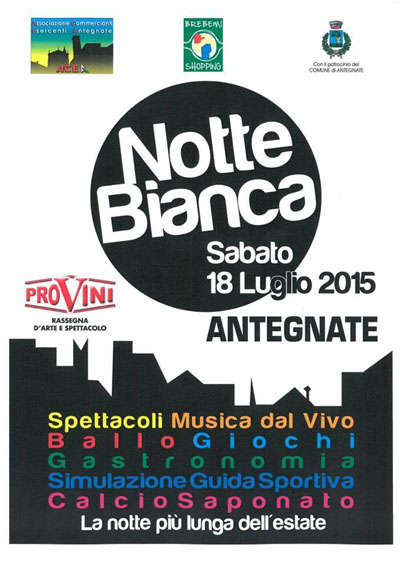 L'Associazione Commercianti Esercenti Antegnate con il patrocinio del comune è lieta di presentare la Notte Bianca.