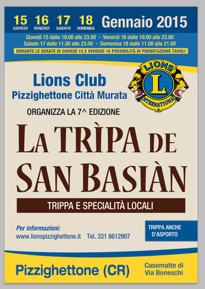 Il Club Lions con il patrocinio del Comune di Pizzighettone presenta "La Trìpa de San Basìan" presso Casematte di Via Boneschi.